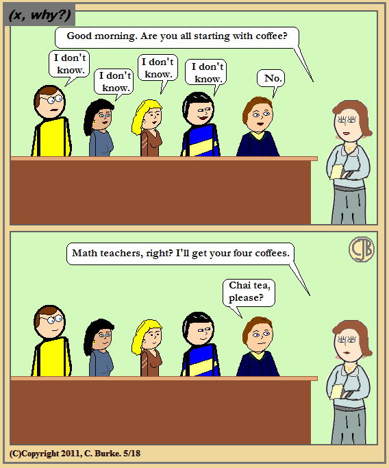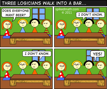 The logicians from Spiked Math Comics illustrate how to do inference from what other people do or do not know. Here is a follow-up from (x, why?) Comics